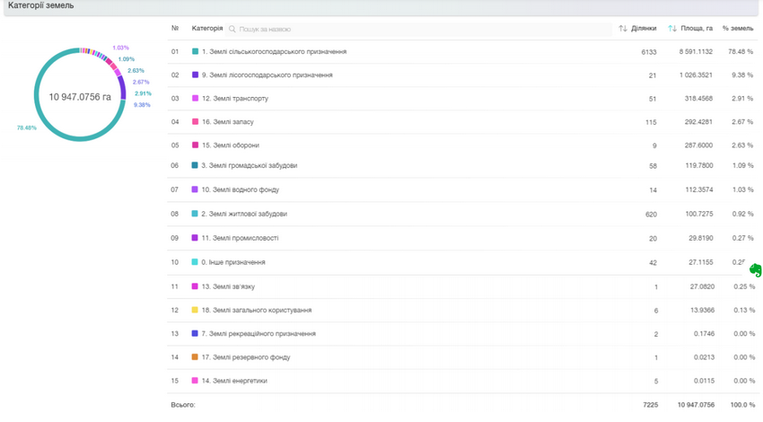 В рамках проведення Аудиту було здійснено аналіз земель наступних територій: