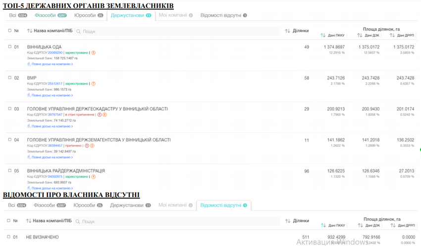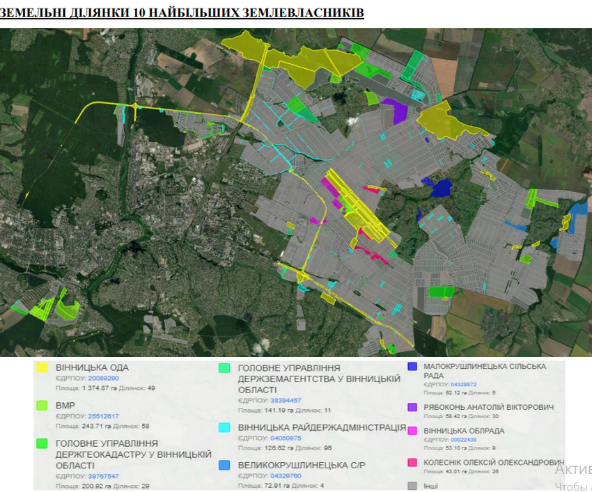 Ми також промоніторили декларації за 2020 рік депутатів Вінницької обласної ради. Ділянки, площею понад 1 гектар є у власності щонайменше 25 депутатів з 84.