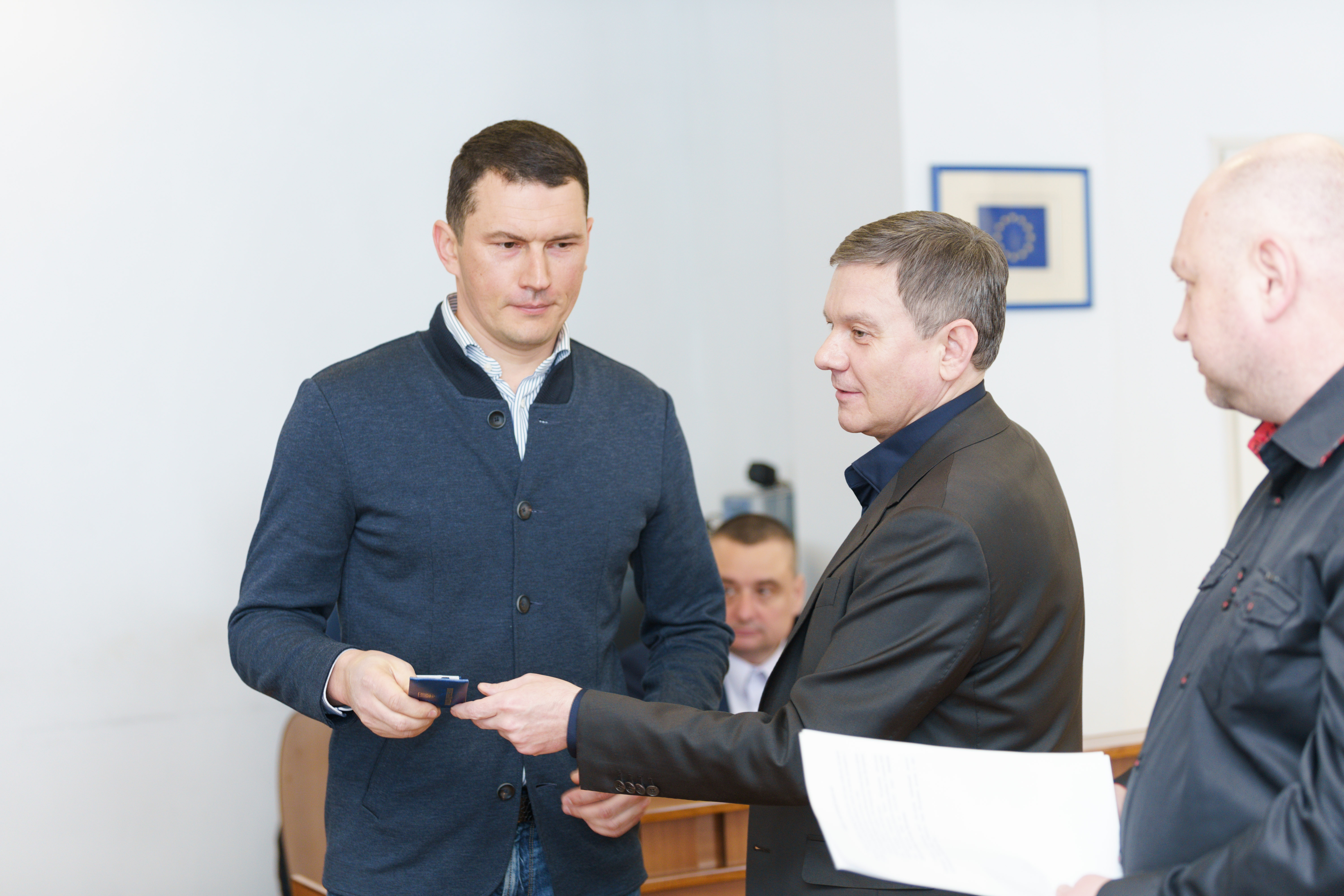 Міський голова Сергій Моргунов на початку засідання сесії вручив Тарасу Ковальчуку посвідчення депутата міської ради та нагрудний знак.