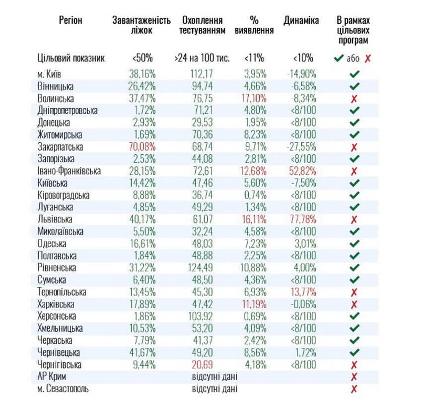 Наразі послаблювати обмеження не можна у 7 областях: Волинській, Закарпатській, Івано-Франківській, Львівській, Тернопільській, Харківській та Чернігівській.
