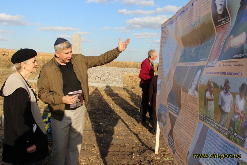 «Я дуже вдячний, що тут сьогодні зібралась така велика кількість учасників церемонії відкриття, адже ми знаходимось на місці тиші і жахіття посеред чудового ландшафту в такій гарній країні, як Україна, яку населяють чудові люди. Одночасно це місце масового вбивства і поховання, тут місце геноциду, де вбито понад 500 ваших співвітчизників. І таких місць в Україні понад 2 тисячі. Загалом в Україні 1,5 млн. євреїв було знищено у ході геноциду. Ми дуже вдячні, що спільно з нашими українськими партнерами ми змогли реалізувати цей проект і сьогодні маємо змогу відкрити та освяти це місце пам’яті. Це має місцем згадок та збереження пам’яті. Але водночас це має стати місцем застереження, має стати сигналом, що наші народи мають спільно боротися за демократію в усьому світі та недоторканість кордонів наших держав», - зазначив на початку церемонії участь директор фонду «Меморіал убитим євреям Європи» Уве Ноймеркер.