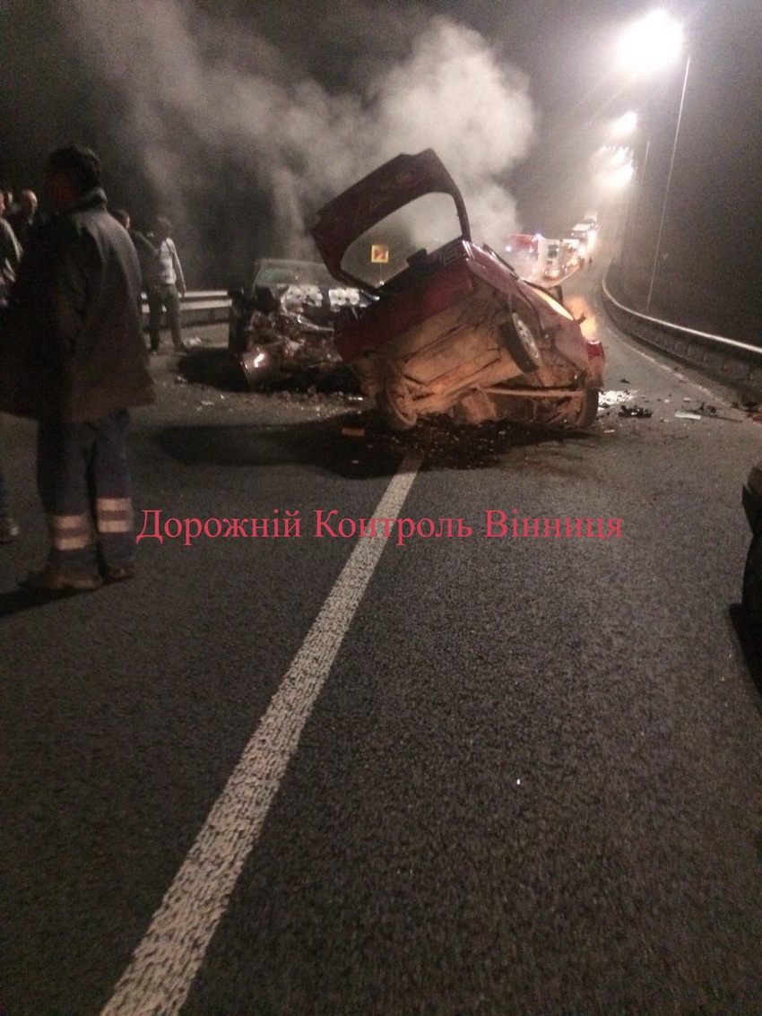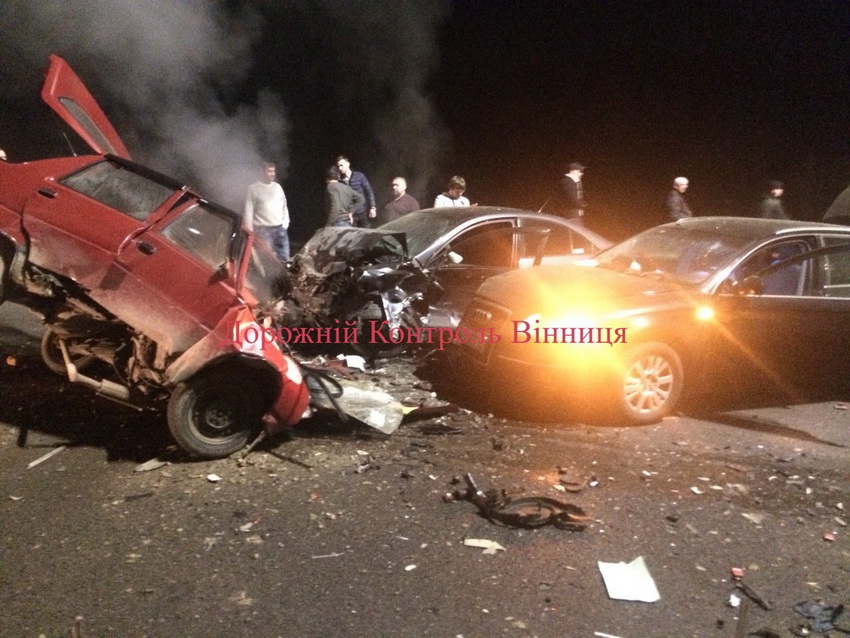 «59-річний водій автомобіля «Таврія» їхав в напрямку Немирова, не впорався з керуванням. Він виїхав на зустрічну смугу руху і зіткнувся з автомобілем «Ніссан». На цій же смузі, де «Ніссан», їхала і «Ауді», яка теж потрапила в ДТП.