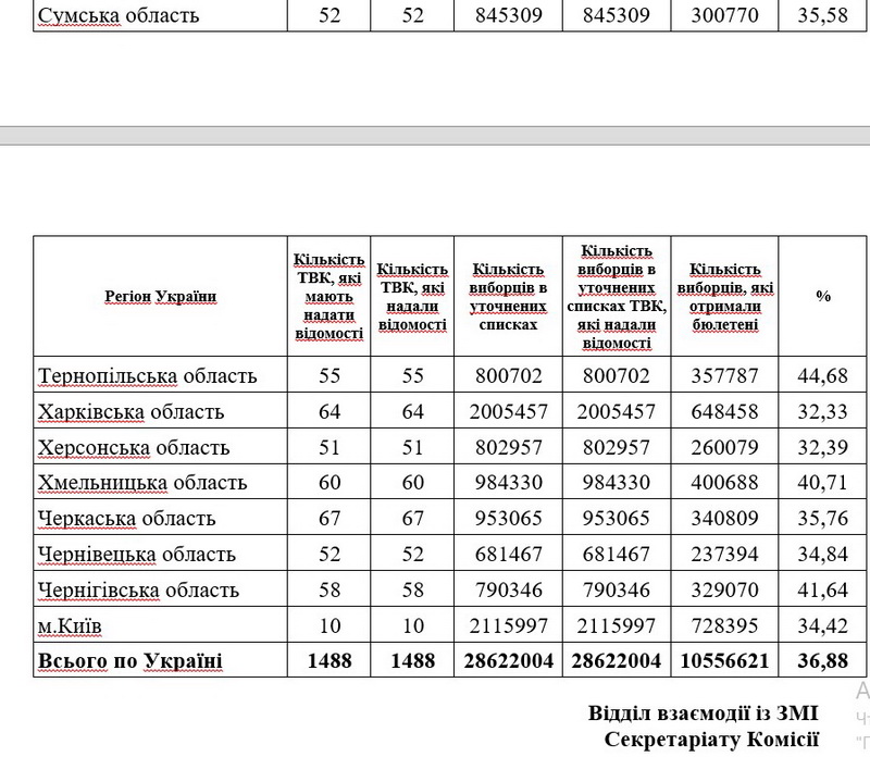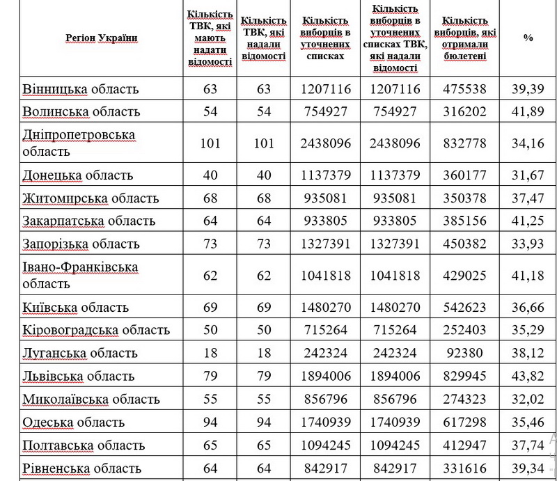 В ЦВК зазначають, що ця інформація не має офіційного характеру, оскільки відповідно до постанови ЦВК від 20 жовтня 2020 року № 404 зазначені відомості надходять до Комісії від органів ведення Державного реєстру виборців, які своєю чергою отримують ці дані від територіальних виборчих комісій будь-якими засобами звʼязку, зокрема телефоном, або електронною поштою.
