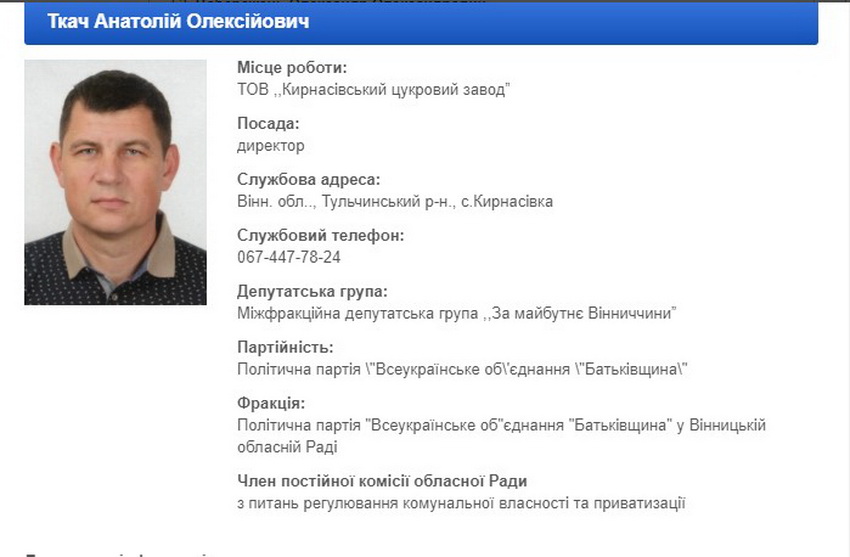 «Обрати на посаду першого заступника голови Вінницької обласної Ради 7 скликання Ткача Анатолія Олексійовича».