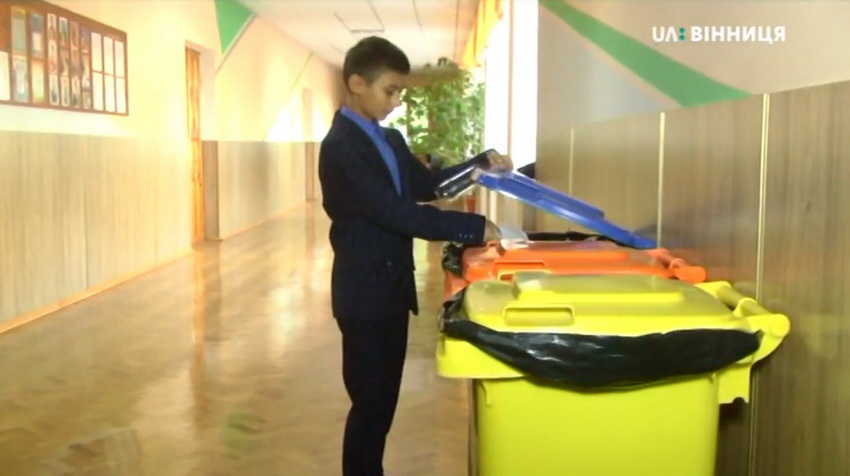 У вінницькій школі №3 на початку нового навчального року, для учнів почали проводити екоуроки. Вчителі розповідають, для чого і як сортувати відходи. Також в школі встановили три контейнери, куди учні школи викидають відходи. Так вирішили їх привчати ще змалечку берегти екологію.
