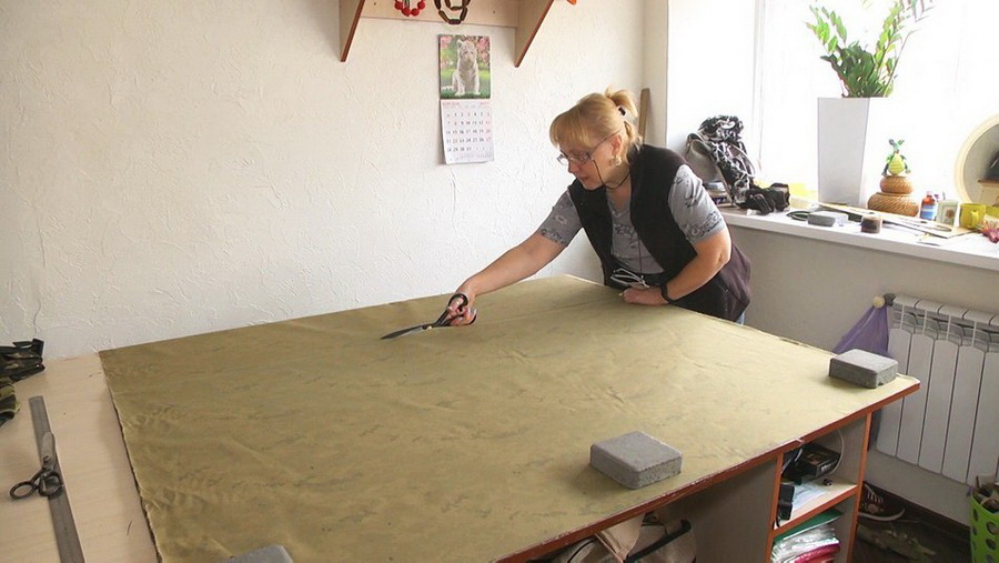 Працює 3 цехи. У закрійному – Олена Костюк, дизайнер інтерʼєрів. До війни, каже, з полімерної глини ліпила квіти. Тепер кроїть одяг для захисників.
