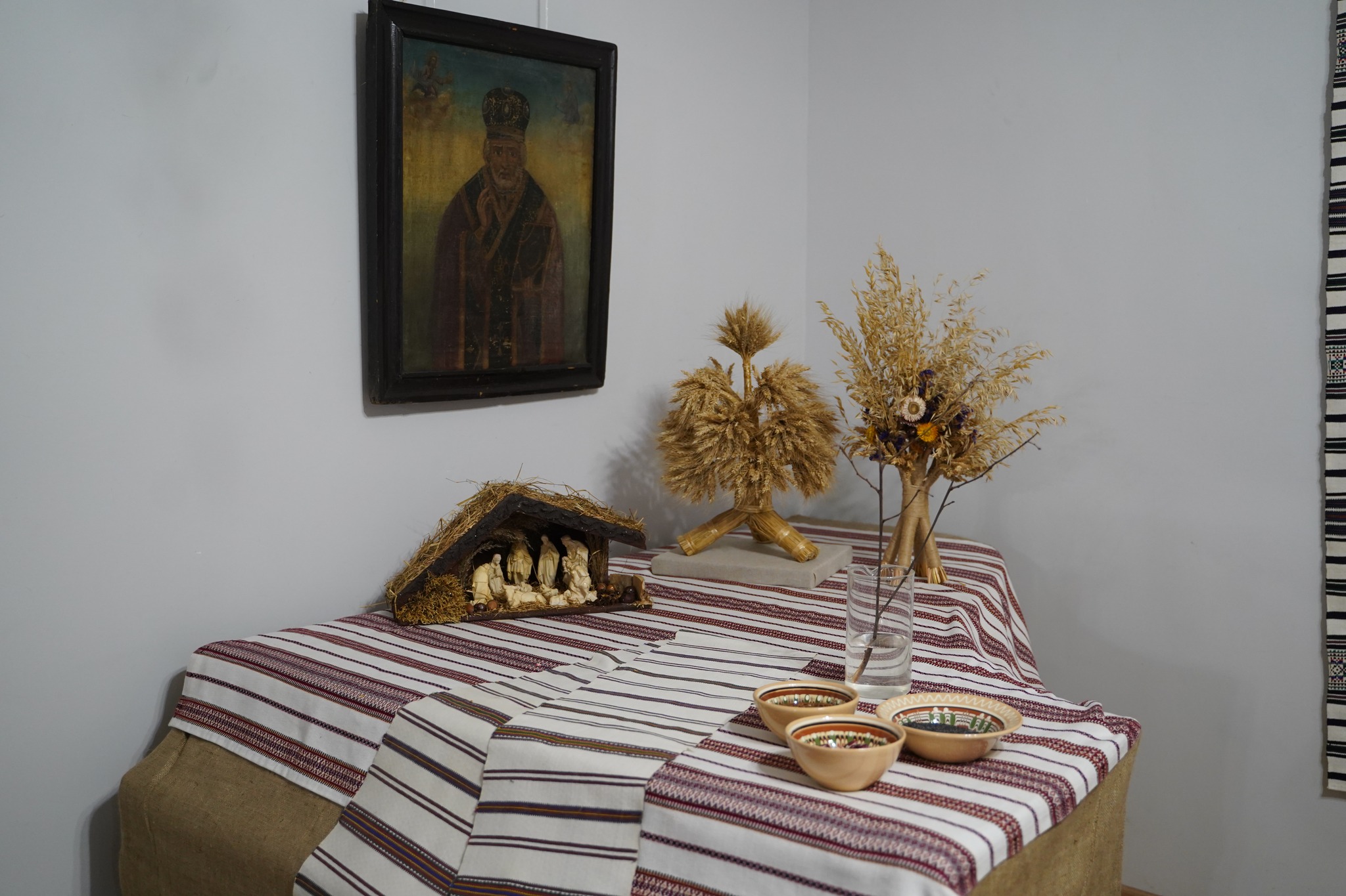 Різдву, за церковною традицією, передував чотиритижневий піст. У цей час виконували всі хатні роботи: білили хату, вивішували найкращі рушники. У деяких районах Поділля вже в ХІХ ст. як оригінальна оздоба на Різдво використовувались паперові квіти й витинанки – мережані паперові вирізки, якими прикрашали стіни і сволок; прикраси: іграшки з соломи та солом’яні «павуки», представлені на виставці. Чільне місце в експозиції посідають ікони.