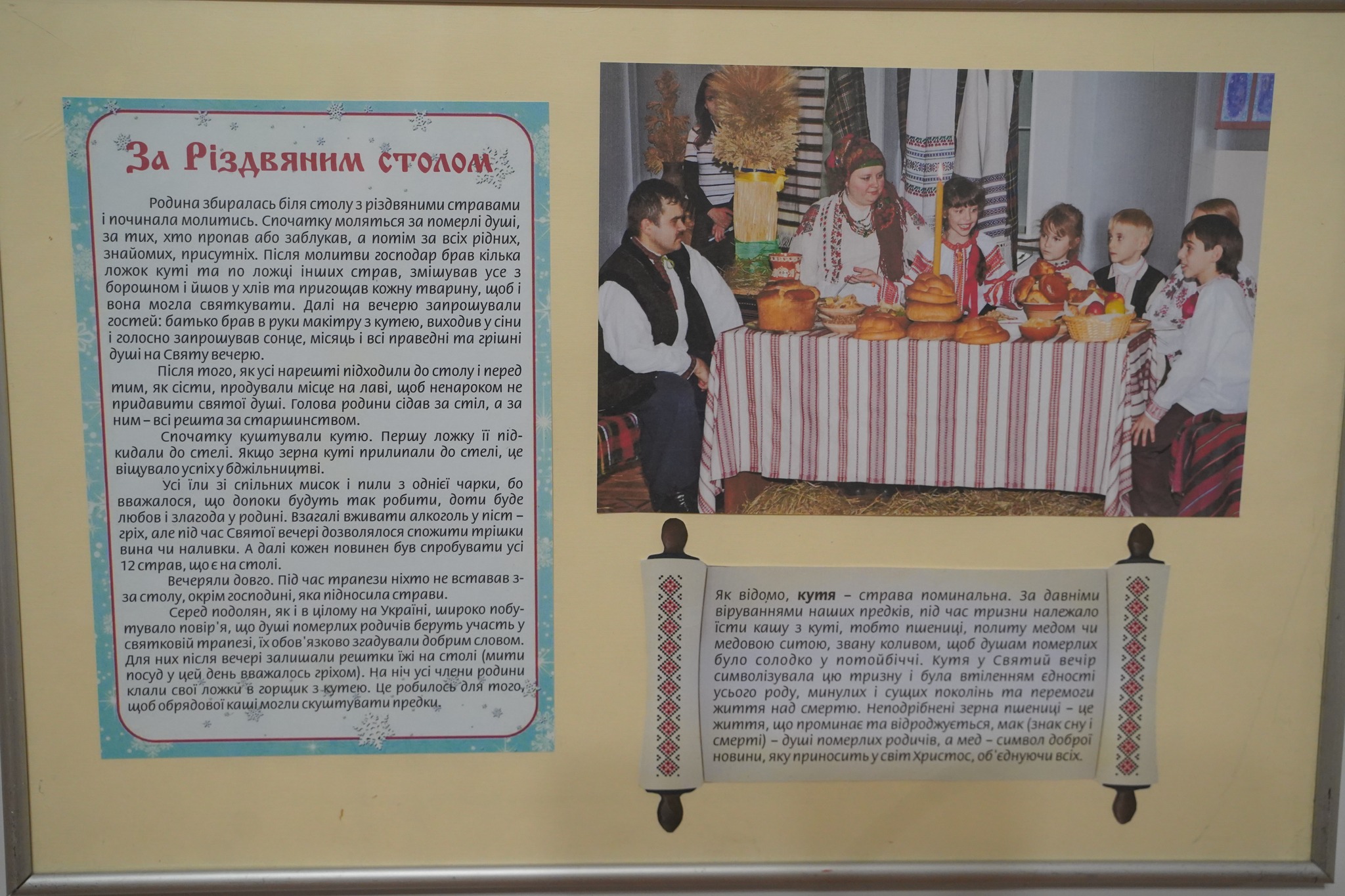 Перебіг святкування Святвечора на Поділлі мав свої особливості. Про них, можна дізнатися з експонатів виставки. Зокрема, для чого усе господарство посипалося маком? Або навіщо діти мали наслідувати квоктання курей, мукання корів? Що таке дідух, обрус? Для чого сокира під Різдвяним столом? Що означає «нести вечерю» і навіщо «водити козу»?