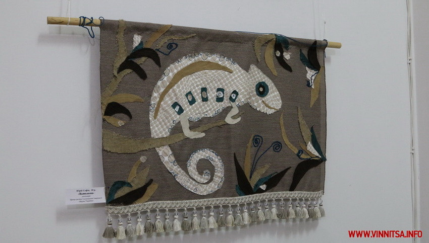 На експозиції Заводської школи мистецтв з Тернопільської області презентували аплікації із застосуванням джинсової тканини. В різних відтінках та з доповненням охри. Є навіть портретні роботи, і вишукані пейзажні.