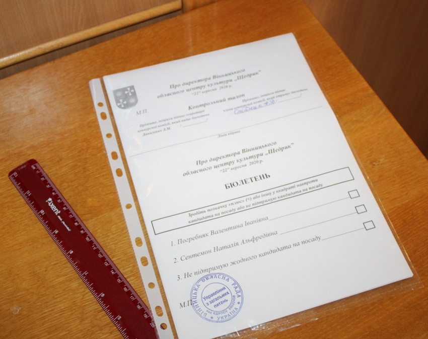 Після презентаційних виступів відбулося таємне голосування, результати якого були одразу ж оголошені: Наталія Сантемон набрала 6 голосів, Валентина Погребняк – 2. Таким чином, на черговій сесії обласної Ради, яка відбудеться 24 вересня, остаточне рішення про обрання директора Вінницького обласного центру культури «Щедрик» – за депутатами.