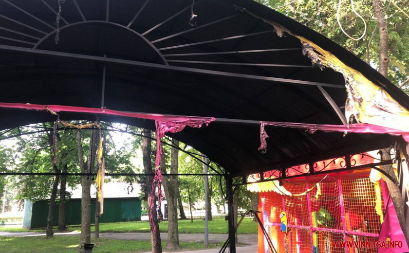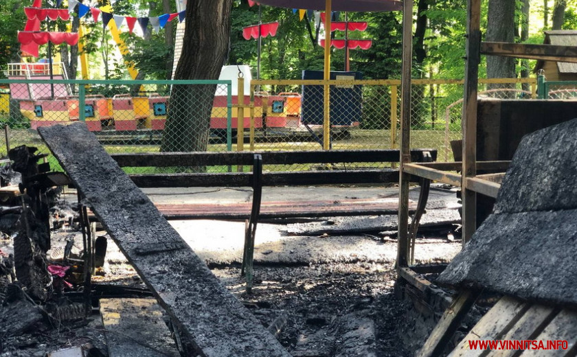 Вчора, ввечері 2 червня, у Центральному парку культури і відпочинку ім. Леонтовича у Вінниці сталась пожежа, внаслідок якої згоріли два павільйони з дитячими атракціонами. Згоріли дитячі батути з «лабіринтом» та дитячі ігрові автомати. Атракціони, які були в приватній власності, вигоріли вщент. На місці залишись лише металеві каркаси і обгорілі дитячі машинки та «жабка». Залишки поліетилену з батутів «зависли» на вуличному ліхтарі, а в повітрі стійкий запах гарі.