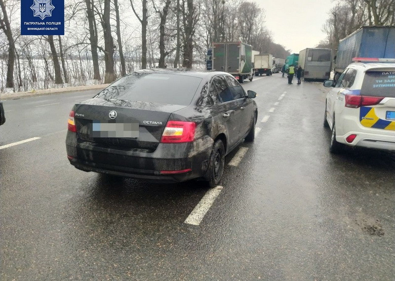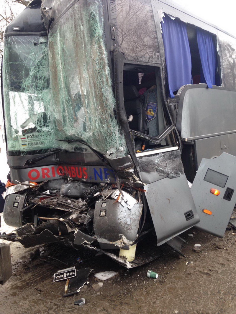 «Водій автобуса Van Hool, який надає послуги з перевезення пасажирів на міжнародному маршруті Херсон — Познань, рухаючись в напрямку Вінниці, в правій смузі для руху допустив бокове зіткнення з автомобілем Fiat, який рухався в попутному напрямку в лівій смузі для руху.