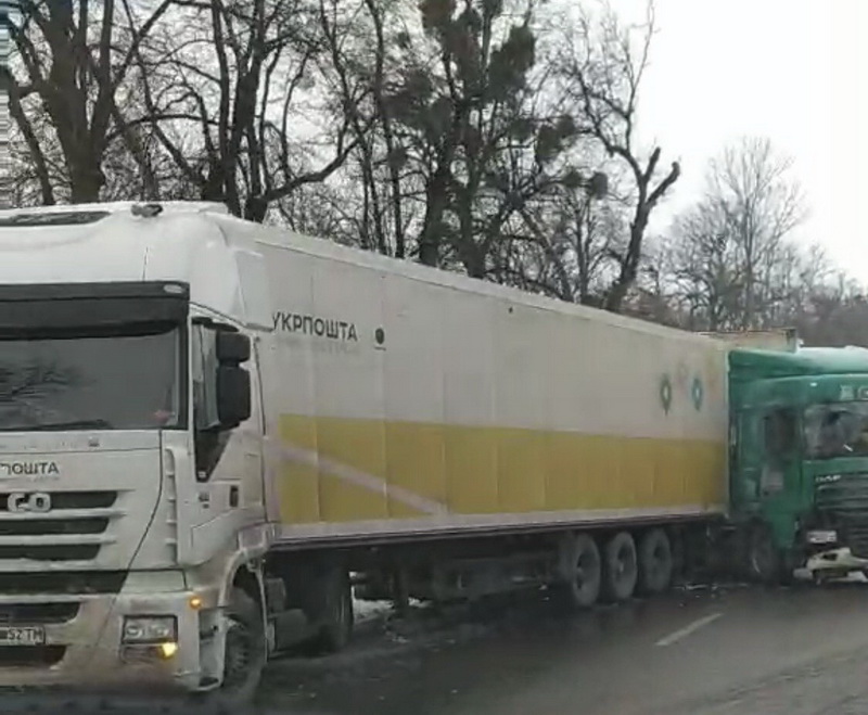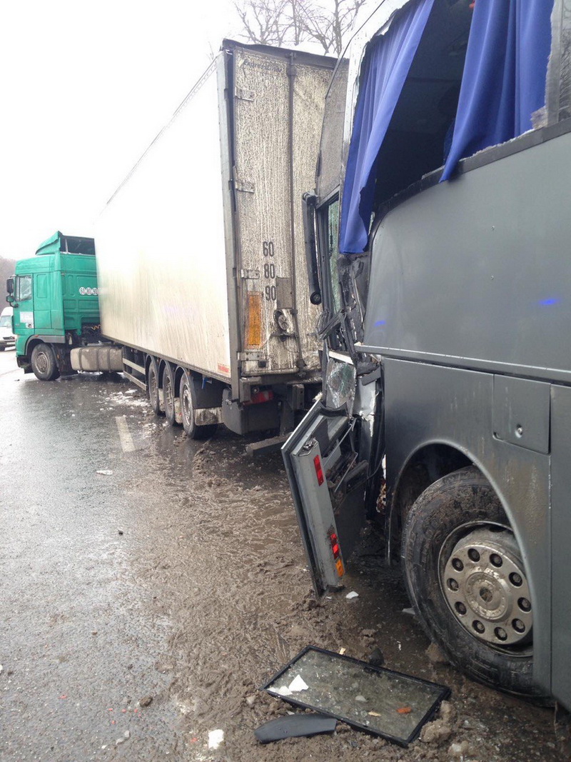Після цього водій автобуса в правій смузі для руху допустив зіткнення з вантажним автомобілем Daf, який по інерції зіткнувся із ще одним вантажним автомобілем Iveco.