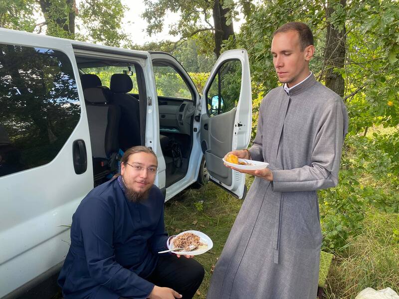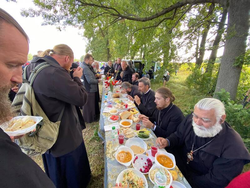 У селі Красносілка паломників зустріли місцеві жителі, які для всіх приготували обід.