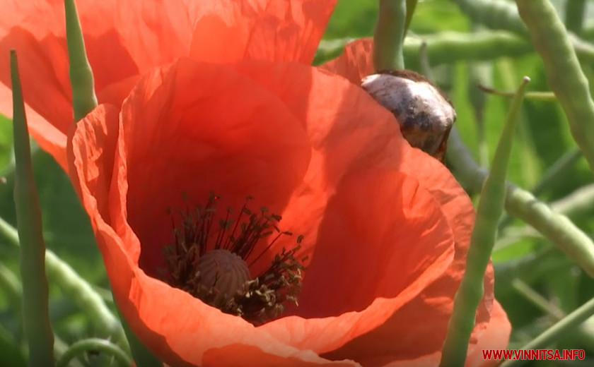 Сотні тисяч диких маків розцвіли посеред рапсового поля біля Калинівки на Вінниччині.