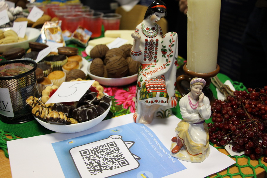 Стартувала акція на великій перерві. В холі коледжу розставили столи з випічкою – тістечка, пиріжки, кекси та напоями. Особливого колориту додали українські народні та патріотичні атрибути. Ними учасники ярмарку прикрасили свої імпровізовані ятки.