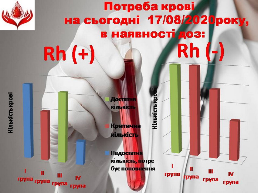 Станом на ранок 17 серпня у Вінницькому обласному центрі служби крові критична нестача крові чотирьох груп. Наразі в медзакладі нестача крові ІІ групи Rh (+) та ІІ, ІІІ, ІV груп Rh (-).