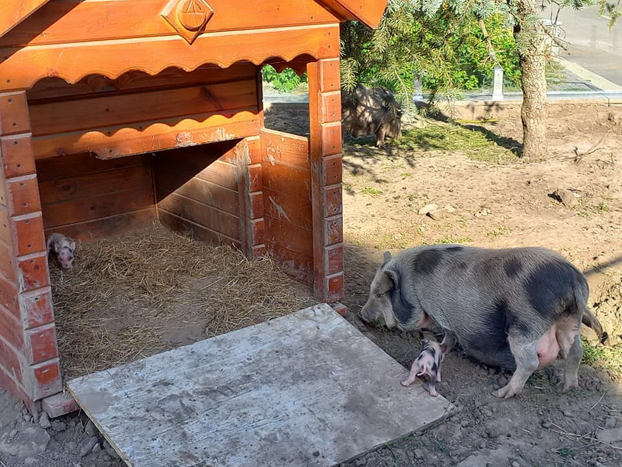 У Подільському зоопарку – повнонення. У родині декоративних в’єтнамських свиней народилися плямисті поросята.