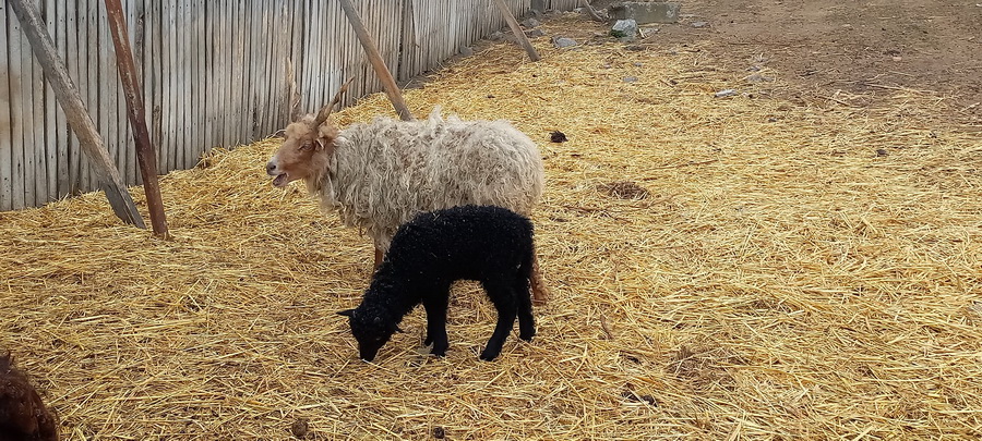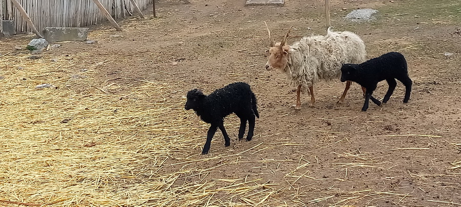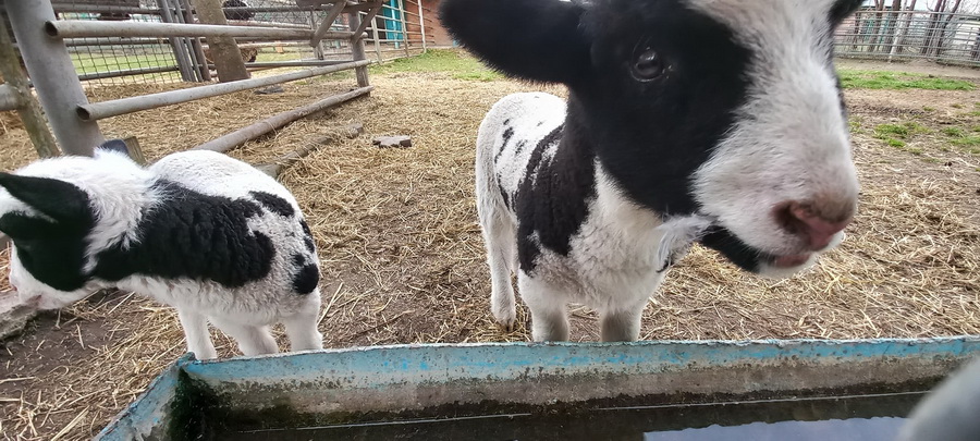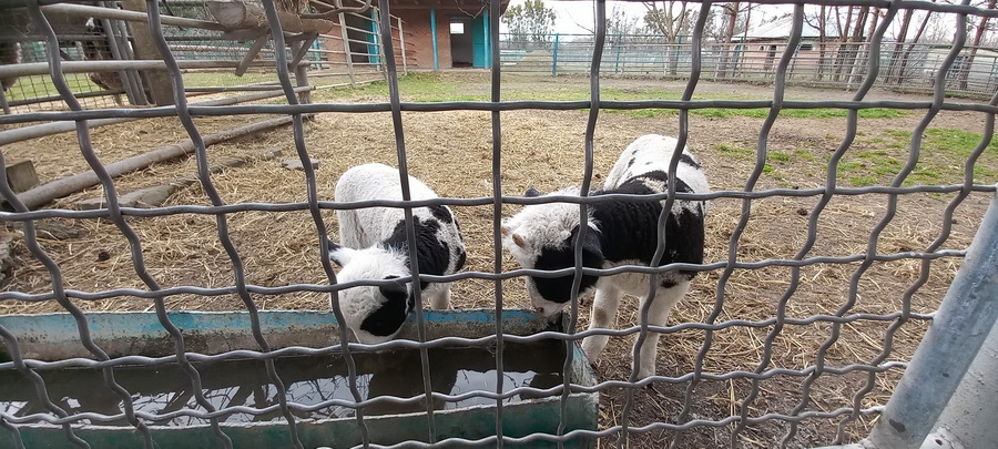 Чорні, як вуглинки, малюки овець гвинторогих вже підросли. Разом із всією отарою випасаються у вольєрі. Скубають зелену травичку та розглядають відвідувачів.