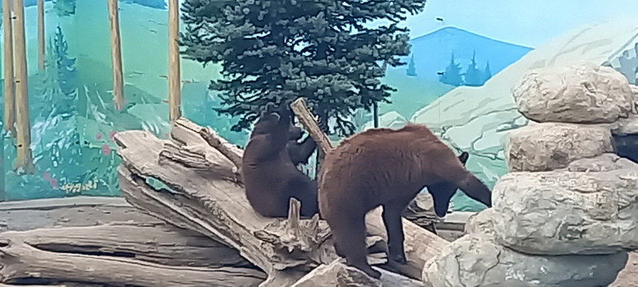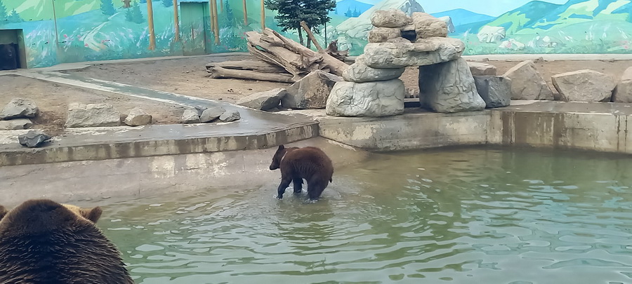 Бурі ведмежата, які народились минулої зими, за своїми розмірами навздоганяють батьків. Вони щасливі, бо на вулиці нарешті тепло і можна скільки завгодно плескатись у басейні», – повідомили у зоопарку.