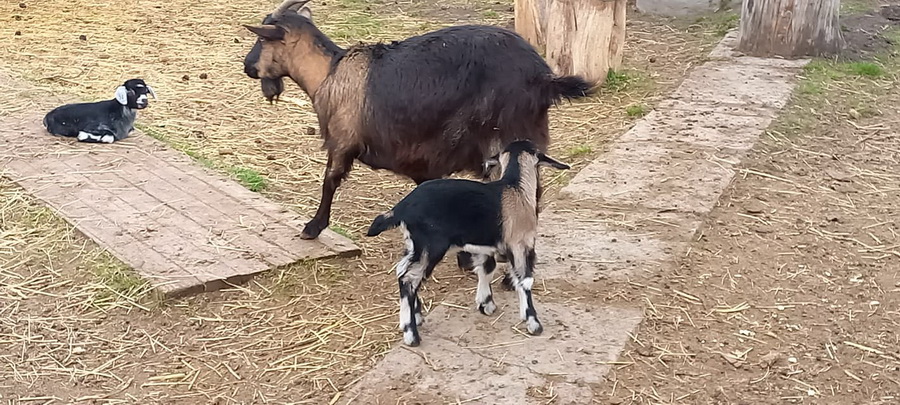 Новонароджені козенята ще дуже маленькі. Їх ніжки ще слабкі. Тож, більшість часу вони відпочивають неподалік своїх мам та гріються на сонечку.