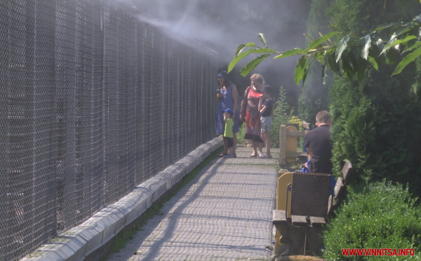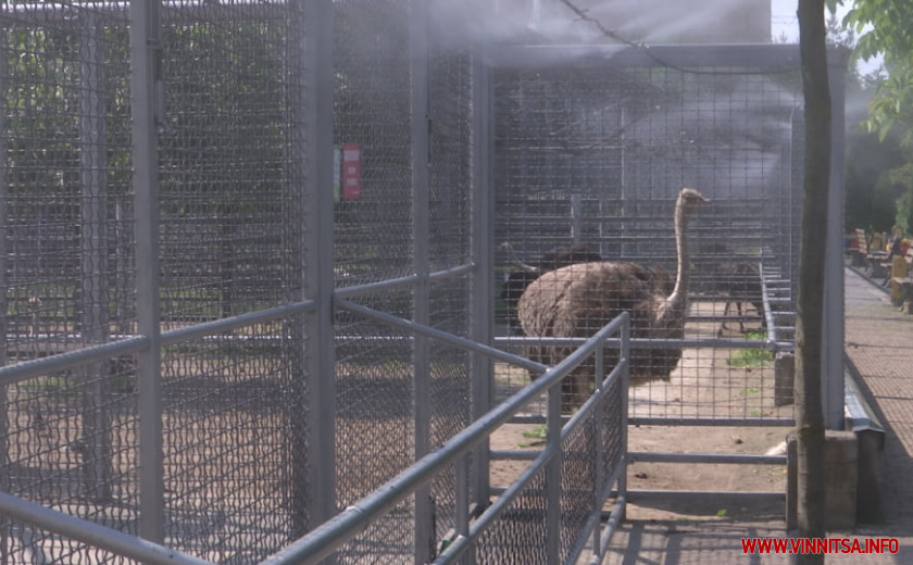 У Подільському зоопарку, що по вулиці Зулінського у Вінниці, встановили обладнання по охолодженню повітря. Вздовж 140 метрів на вольєрах вмонтували туманорозпилювальну систему. Та знижує температуру до 8 градусів. Воду використовують артезіанську, яку подають спеціальними помпами. А розпилювач її перетворює в туман. Впровадити нововведення вирішили у зв’язку зі спекою. Оцінити освіжаючу прохолоду можуть як відвідувачі, так і птахи з тваринами.