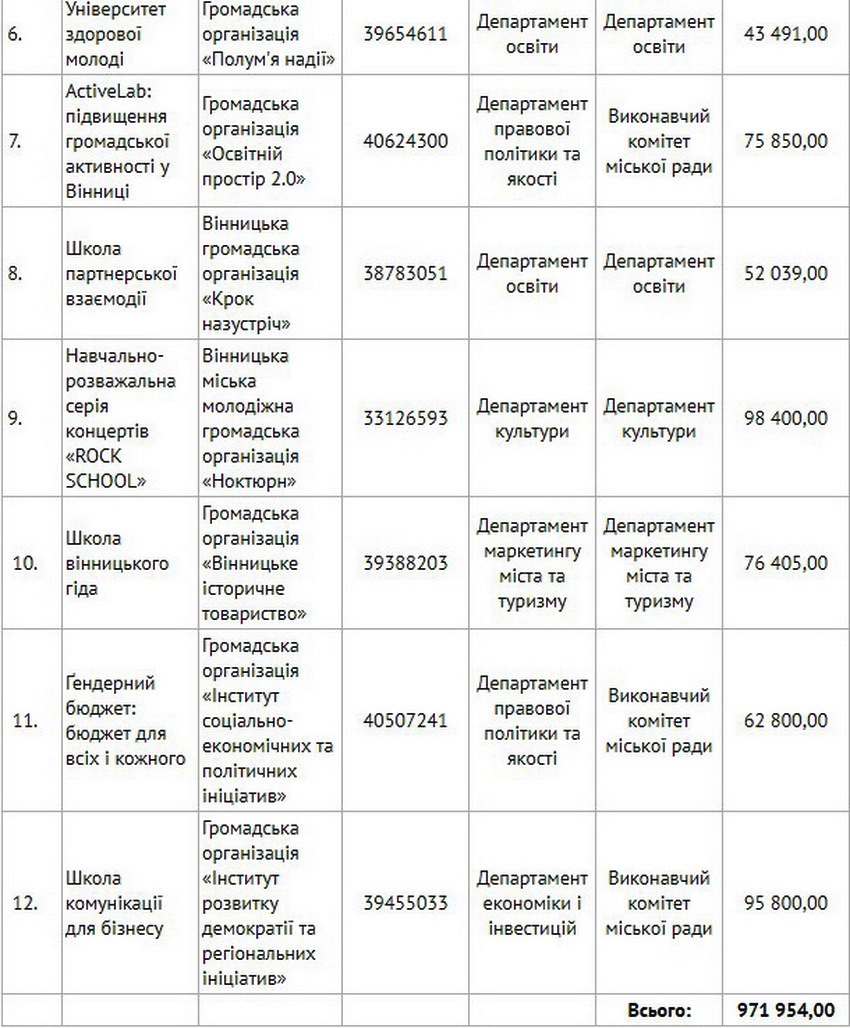 «Щороку після проведення конкурсу,ми удосконалюємо та спрощуємо умови участі інститутів громадянського суспільства в конкурсі, тим самим вносимо зміни до «Програми надання фінансової підтримки інститутам громадянського суспільства на реалізацію соціально-культурних проектів у м. Вінниці». Департамент правової політики та якості міської ради відповідальний за реалізацію даної Програми, за організацію та проведення самого конкурсу», - розповіла начальник інформаційно-аналітичного відділу департаменту правової політики та якості міської ради Наталія Малецька.
