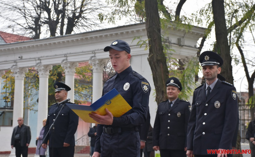24 жовтня у Вінниці 30 поліцейських склали присягу на вірність українському народу. Урочистість відбулася в Центральному парку. Новобранці вшанували пам’ять загиблих правоохоронців хвилиною мовчання. Текст присяги зачитували по черзі.