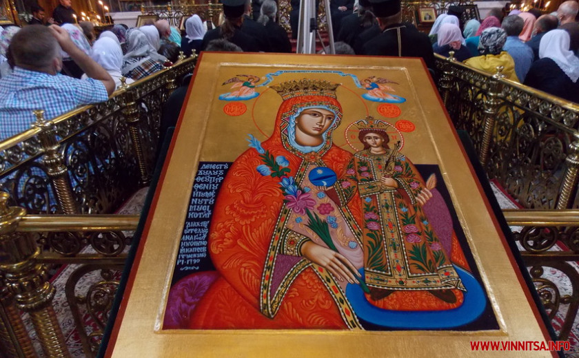 Афонські монахи також привезли у подарунок вінничанам зі Святої Гори ікону Пресвятої Діви Марії з маленьким Ісусом на руках.