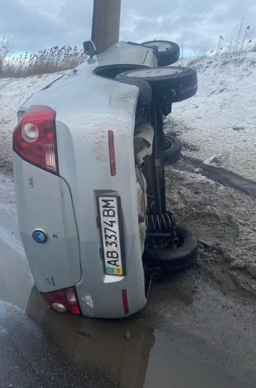 Як розповіли Вінниця.info у патрульній поліції Вінниччини, водій вантажівки «ЗІЛ» виїхав на зустрічну смугу, чим спричинив аварійну ситуацію. В той же час, водій автомобіля «Geely» не вибравши безпечної швидкості не впорався з керуванням та в’їхав в стовп, після чого перевернувся.