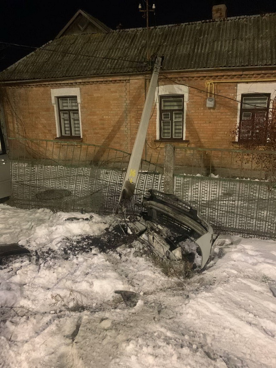 Вранці 2 лютого у Вінниці, по вулиці Лесі Українки, сталася ДТП. Автомобіль Toyota Corolla в’їхав у стовп, який впав на дах будинку, а таккож зігнув паркан. Від автомобіля відлетів бампер. На водія склали авдмінпротокол.
