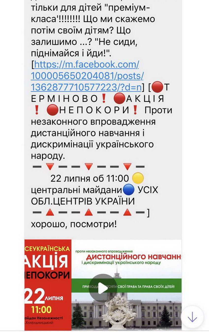 «Звертаємось до Вас від імені батьків та учнів шкіл, до Вашої людяності і здорового глузду. Зупиніть процес дистанційного навчання на 2020/2021 навчальний рік. Дайте можливість дітям та учням навчатися в школі».
