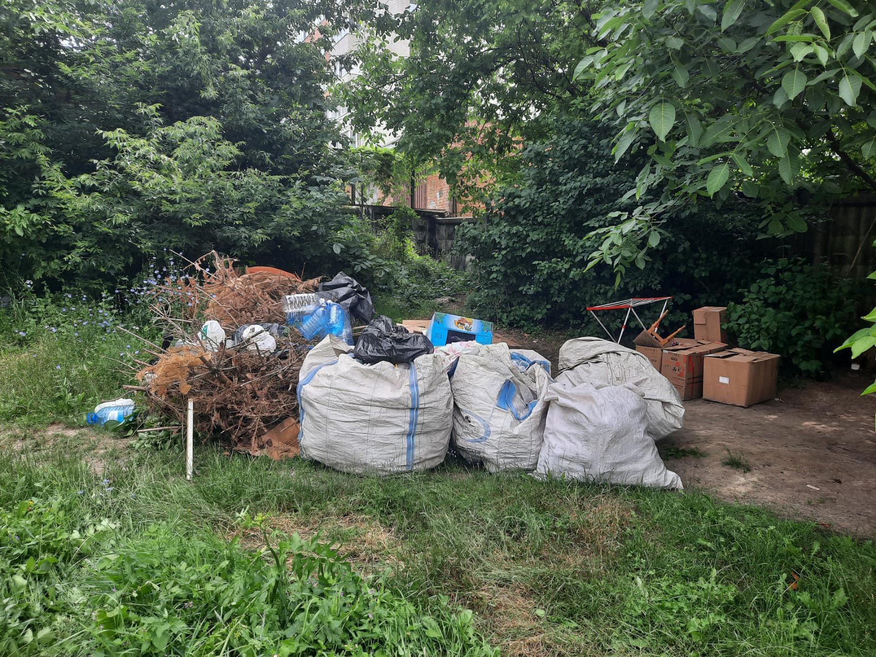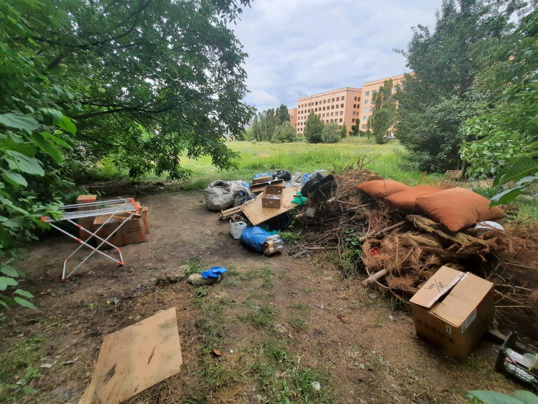 Пляшки, подушки, коробки, гілля та інше сміття – так у Вінниці безхатченки облаштували собі «зону відпочинку» на території Економіко-правового коледжу, який знаходиться по вулиці Пирогова. Люди почали скаржитися і табір ліквідували.
