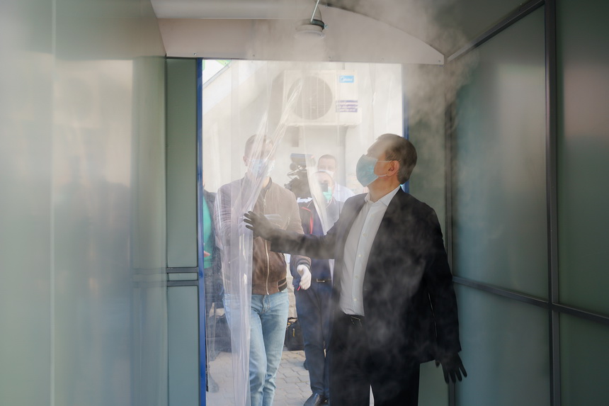 «Це для дезінфекції лікарів, які тут працюють, та людей, які заходять у медичні заклади. Як користуватися – потрібно зайти, закрити очі, щоб не потрапляв розчин на слизові, пройти по кабінці і вийти. Це абсолютно безпечно, єдине, що є люди, які схильні до алергії, з бронхіальною астмою, таким людям потрібно це обережно робити. Дуже хороший подарунок від фонду «СтопВірус» в час пандемії. Ми задоволені, що ця конструкція знаходиться на спільній території нашого центру ті лікарні №1», - сказав Сергій Бельц.