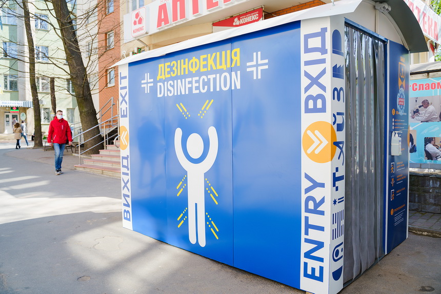 У Вінниці підприємці розробили установку з «дезінфікуючим туманом». 23 квітня її передали до Вінницького центру первинної медико-санітарної допомоги №3. Це автономний модуль, у якому застосовується дві технології дезінфекції: стандартна і ультразвукова. Коли людина проходить через цей тунель, відбувається знезараження. «Дезінфікуючі тунелі» можна встановлювати не тільки на входах до лікарень, але й до адмінбудівель, торгових центрів та в інших місцях скупчення людей.