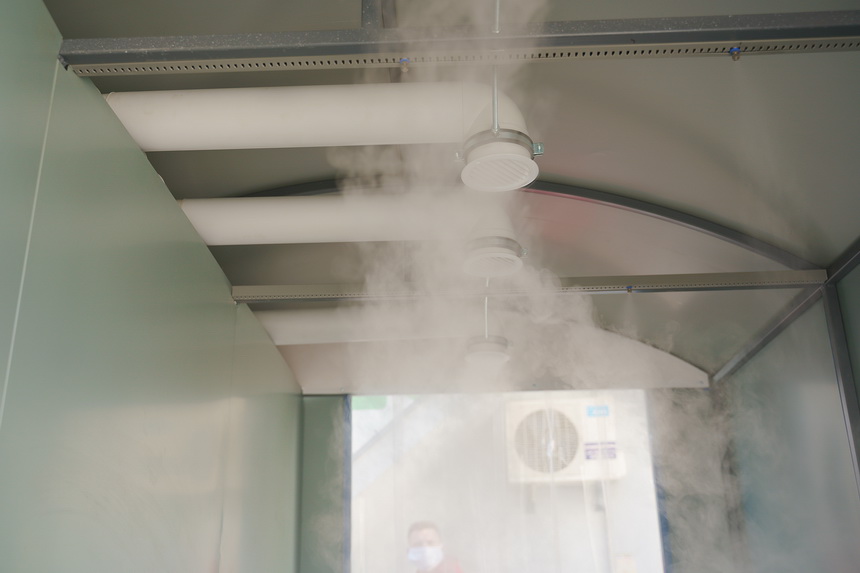 Подібні конструкції уже застосовують у країнах Європи та Китаї. Проте вінницькі підприємці вирішили її вдосконалити. Ця установка-дезінфектор витрачає в чотири рази менше деззасобу у порівнянні зі стандартними моделями, тут застосовується сучасна технологія «холодний туман». Усе обладнання розміщено в єдиному антивандальному модулі. Його можна встановлювати у громадських місцях.
