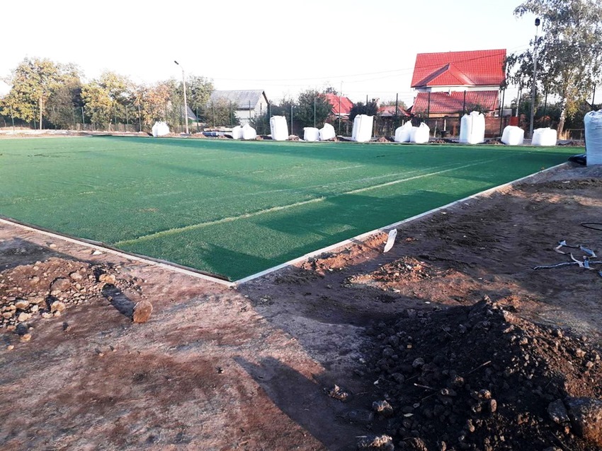Поле для мініфутболу вже вистелили штучною травою. Облаштовують ємність з піском для стрибків у довжину, викладають доріжки.