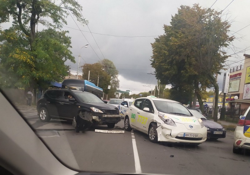 Близько 13.00 години у Вінниці на вулиці Р. Скалецького сталась дорожньо-транспортна пригода – зіштовхнулись два легковики. Одна з машин – автомобіль таксі марки «Nissan Leaf».