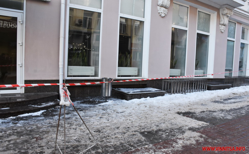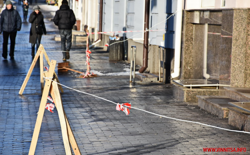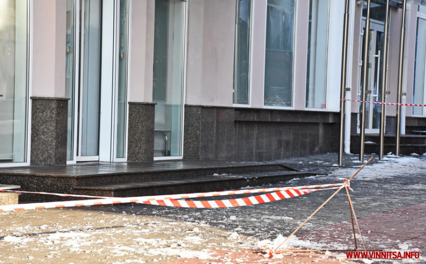 У центрі Вінниці обмежувальною стрічкою обгородили будівлю Сьомого апеляційного адмінсуду, аби запобігти травмуванню пішоходів, якщо з даху падатимуть бурулі.