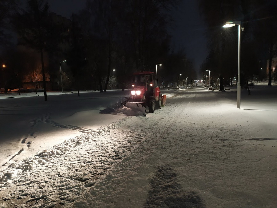 За даними пресслужби Вінницької міської ради, снігоприбиральна техніка розпочала очищати місто ще з обіду 7 лютого. На дороги міста виїхало 45 одиниць техніки. Вночі ланки з спецтехніки магістсральними вулицями пройшлися двічі. Також, чотири рази посипали спуски та підйоми. Як повідомляють у департаменті житлового господарства, комунальні служби розпочали працювати о 4:30 ранку. Розчищає сніг 18 одиниць техніки та 350 двірників. Залучили також додатково будівельні бригади.