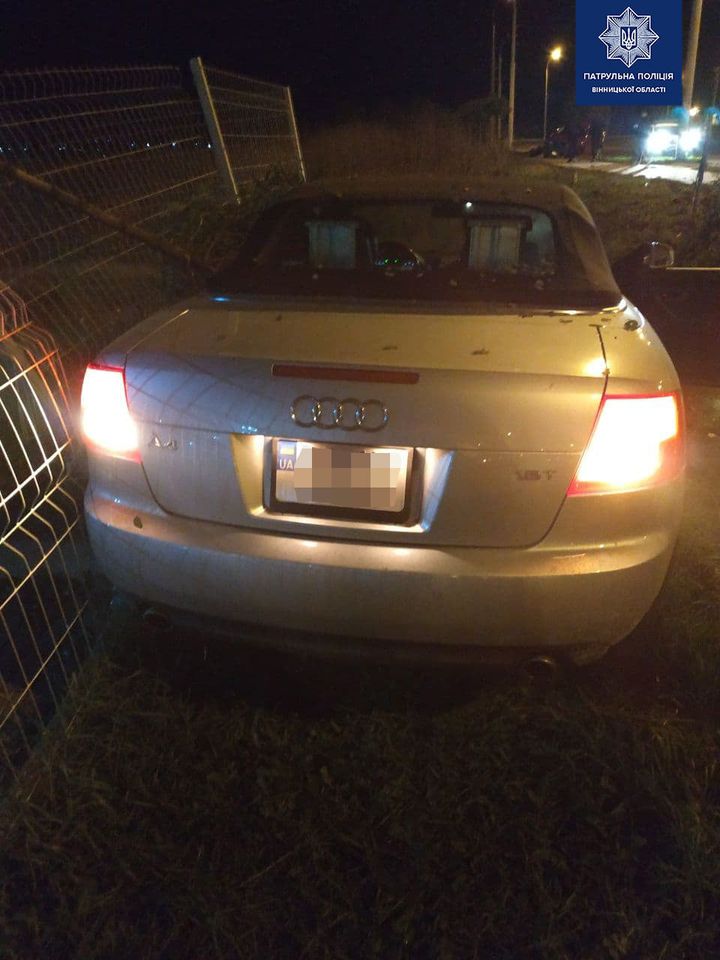 23 листопада у Вінниці, по вулиці Келецькій сталася ДТП. Водій автомобіля «Ауді» влетів у припаркований «Нісан», а потім ще у паркан і зніс два дерева. З місця аварії чоловік втік, залишивши авто.