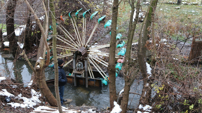 Невеличке колесо на вузькій річці Вінничка нагадує атракціон чи карусель. Колесо безперервно крутиться і виробляє електроенергію.