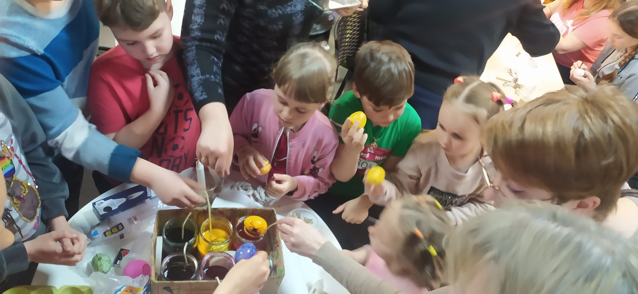 Усі писанки були написані власноруч дітками волонтерів та дітьми-переселенцями.