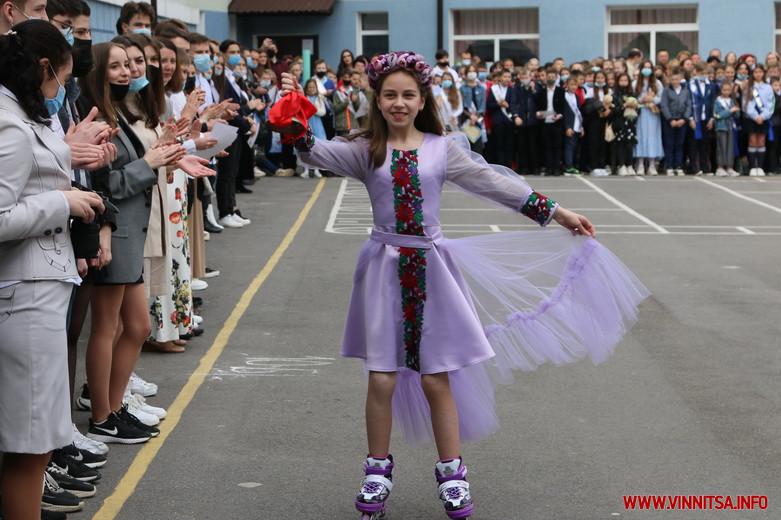 Замість першокласниці, яку зазвичай тримає на плечі одинадцятикласник, родзинкою святкової лінійки у школі-гімназії №17 стала дівчинка на роликах, яка і сповістила присутніх про закінчення навчального року.