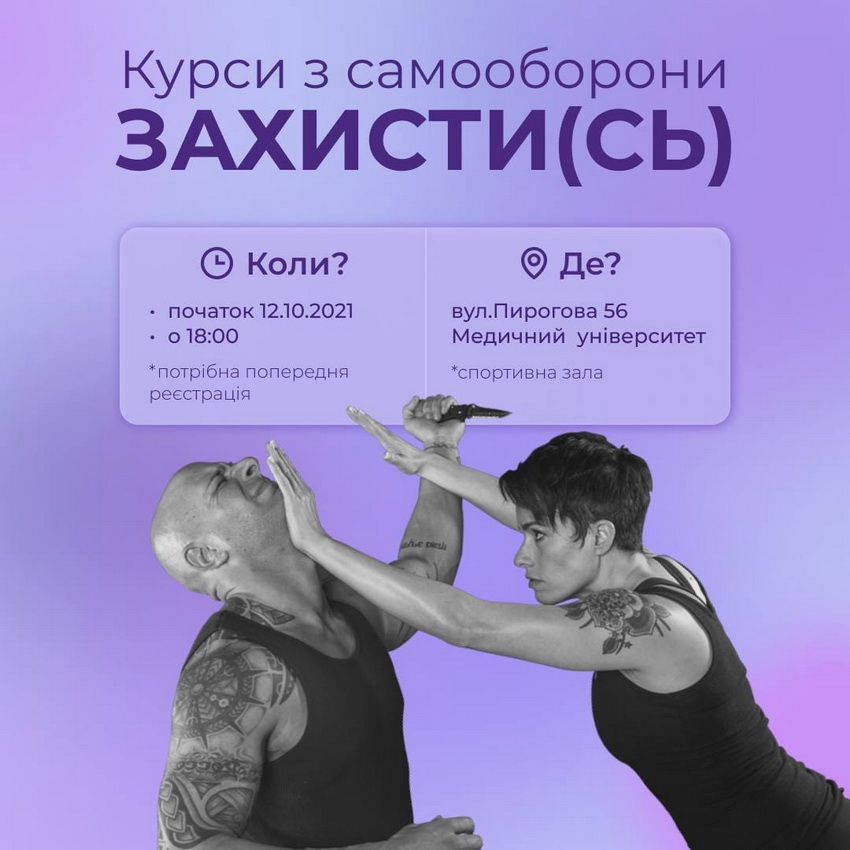 З 12 жовтня у Вінниці для жінок організовують безкоштовні курси по вивченню основ самозахисту. Їх будуть проводити у спортивній залі Медичного університету, що по вулиці Пирогова, 56. Перший урок запланований на 18 годину.