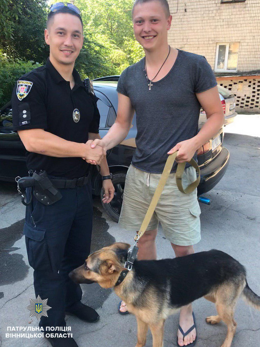 24 червня у Вінниці патрульних поліцейських викликали у двір на проспекті Космонавтів. Місцевий житель повідомив, що протягом ночі до одного з припаркованих автомобілів була прив’язана вівчарка. Вінничанин знав власника тієї машини, тому точно був впевнений, що собака йому не належить.