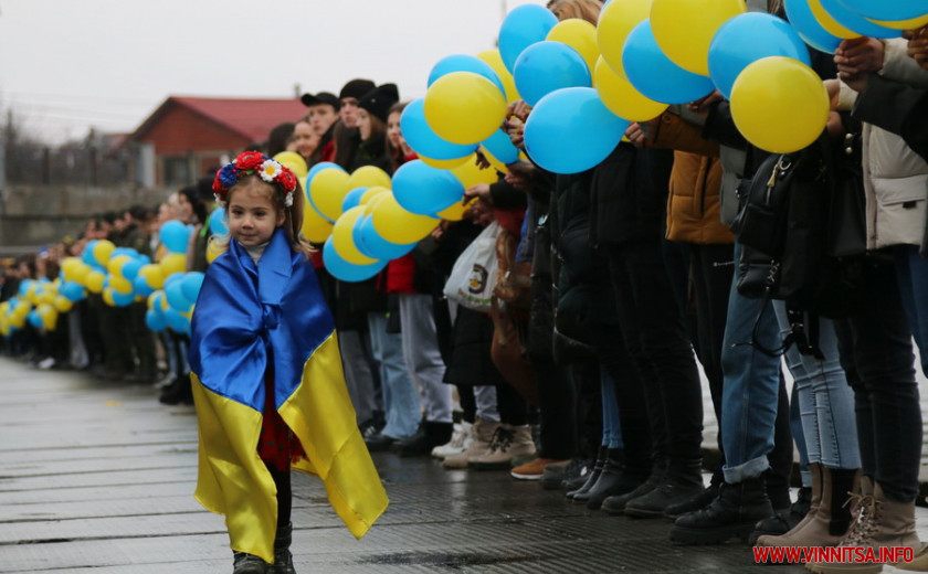 «До Дня Соборності в знак єдності та свободи ми проводимо сьогодні акцію Ланцюг незламності, - розповідає начальниця відділу молодіжної політики Вінницької міської ради Юлія Мончак. - В акції бере участь близько 200 осіб. Це й представники навчальних закладів нашого міста, представники вінницької молодіжної ради, військові, також молодь з числа внутрішньо переміщених осіб, пересічні громадяни. Ця акція проводиться як символ стійкості нашої держави».