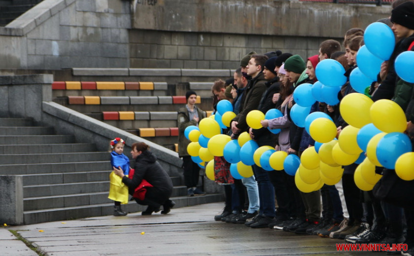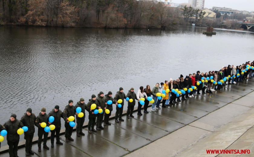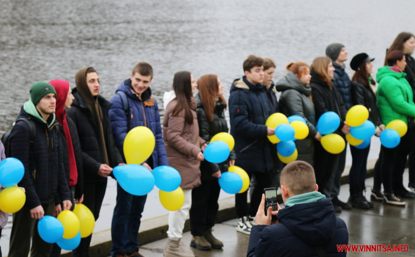 20 січня у Вінниці до Дня Соборності на набережній р. Південний Буг молодь влаштувала патріотичну акцію «Ланцюг незламності».