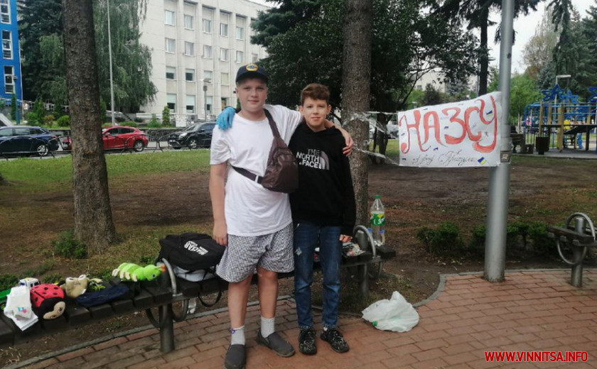 Школярі Ярослав із Вінниці та Артур з Чернігова вже три дні активно збирають гроші на допомогу Збройним силам України. В парку на проспекті Космонавтів у Вінниці хлопці продають лимонад, печиво, іграшки та шкарпетки, а зароблені гроші планують передати у фонд Сергія Притули, щоб допомогти українським армійцям.