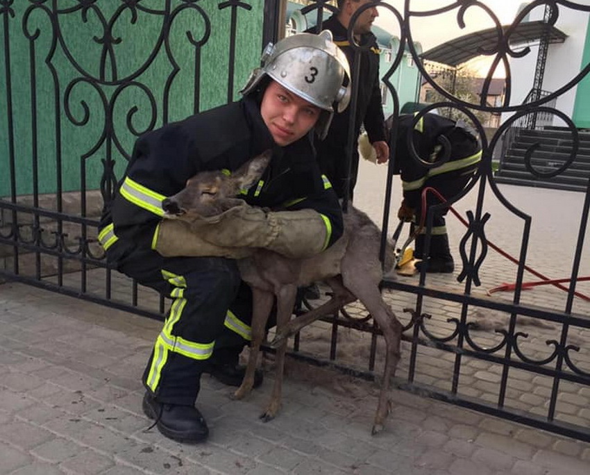 25 квітня, зранку, вінницькі бійці Служби «101» врятували дитинча косулі, яке застрягло у паркані церкви на вулиці Шкільній.